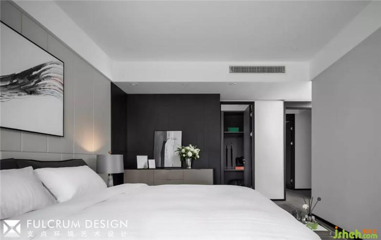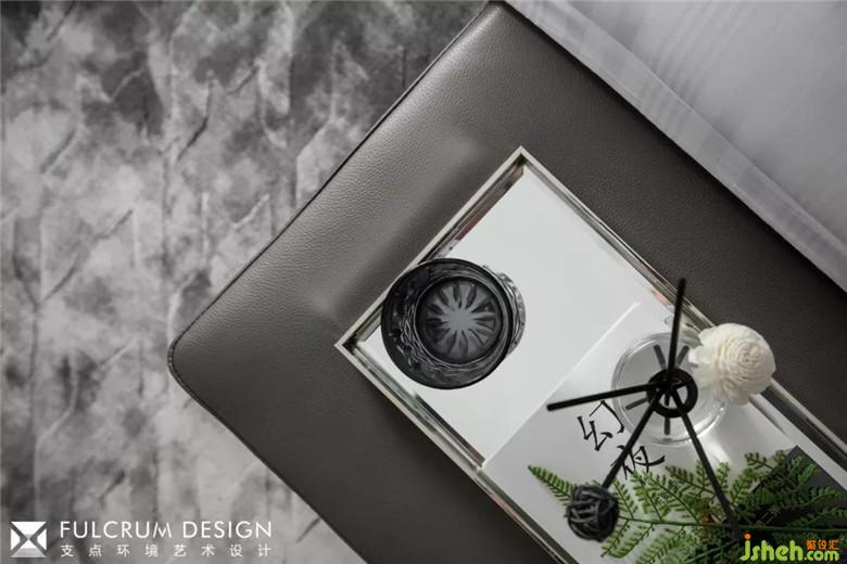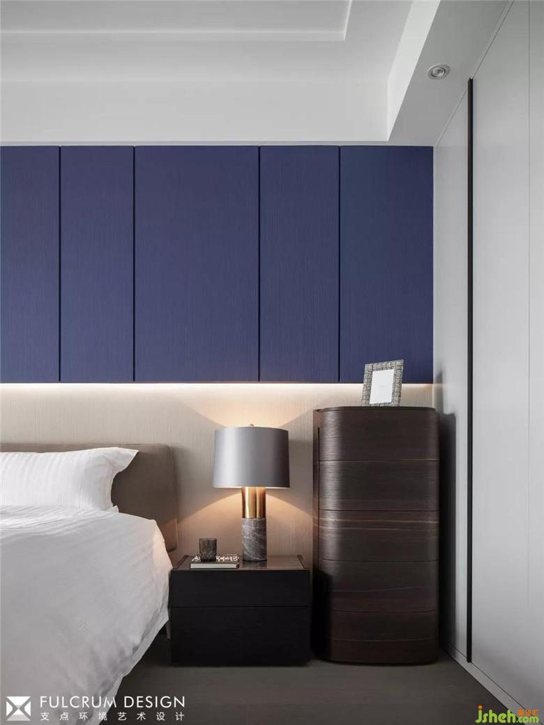 黄色代表动,蓝色代表静,灰色则代表中立。一动一静将空间的性格完美中和,动中有静的安逸,静中有动的生动。从客厅到卧室,两个色彩互为补充。通过艺术饰品装饰、点缀,让空间趣味盎然。主卧的色调略显深邃素雅,灰色的刷漆壁布与深色家具静谧感十足,刚刚好符合业主的喜好也符合他的性格,低调内敛。