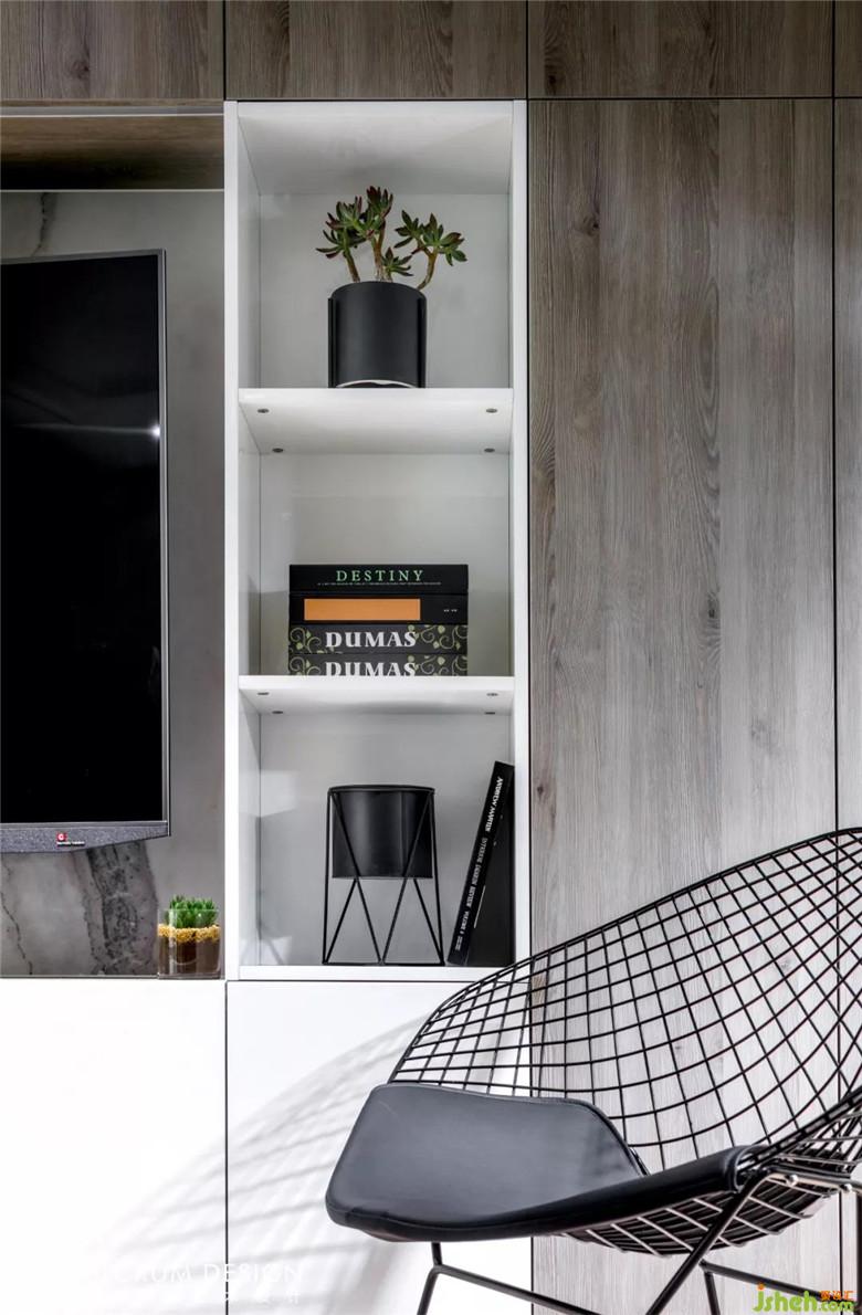 灰色的木纹,白色亮光烤漆,黑色的电视,有一种性格叫冷酷到底