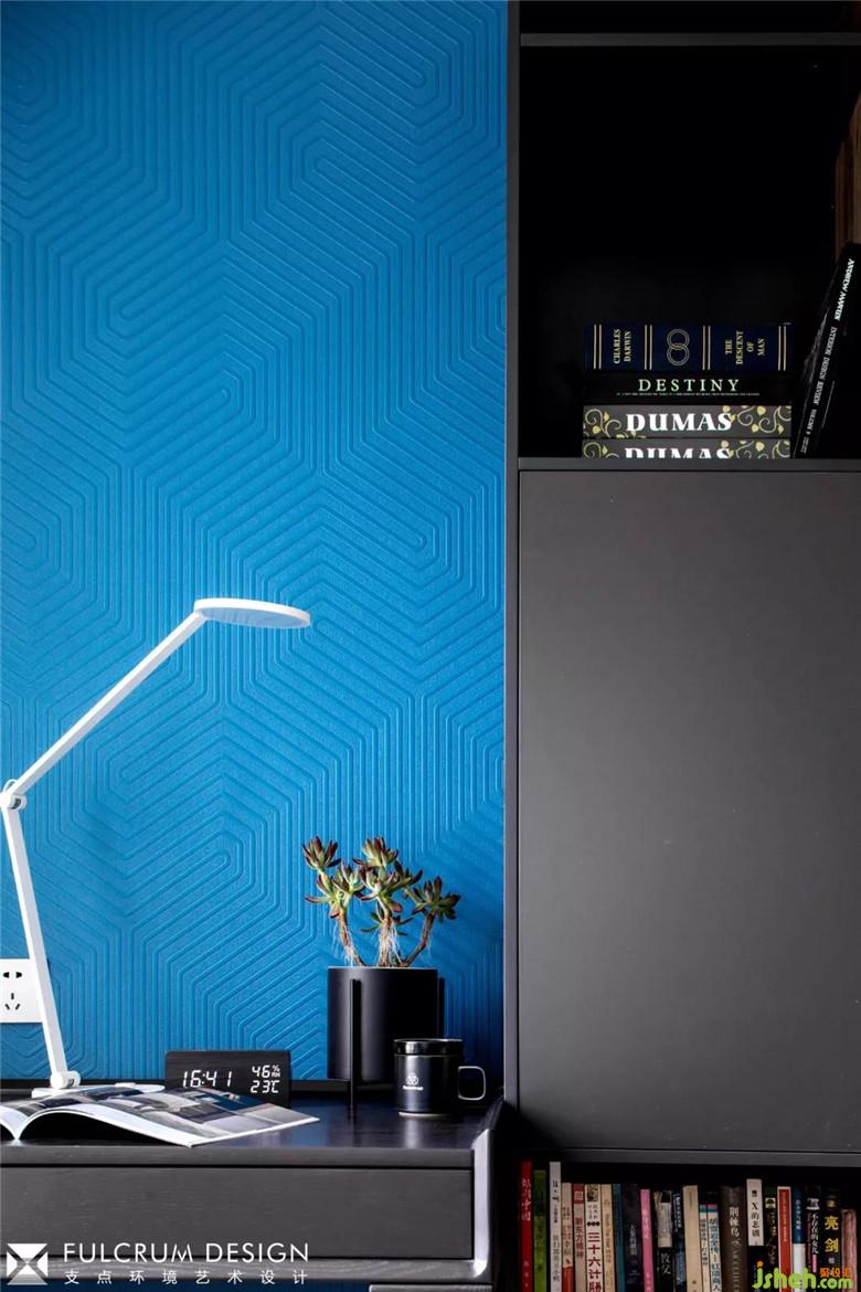 深灰和墨蓝的搭配,迷幻的立体壁布,似知识的海洋,又似思想的星空。装修公司