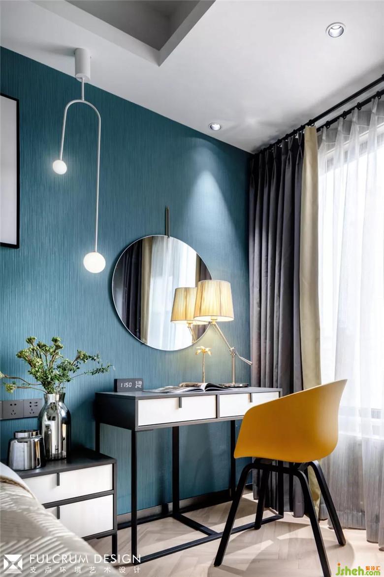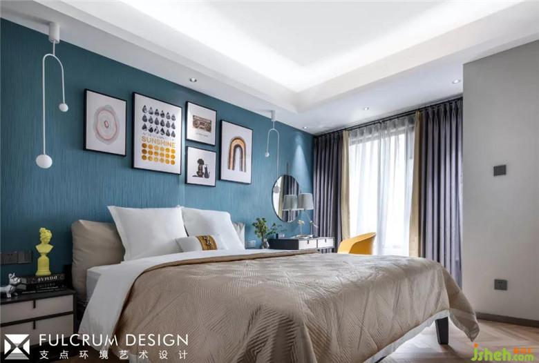 当光线透过白纱的时候,卧室那低沉的灰蓝也显得无比温暖。
