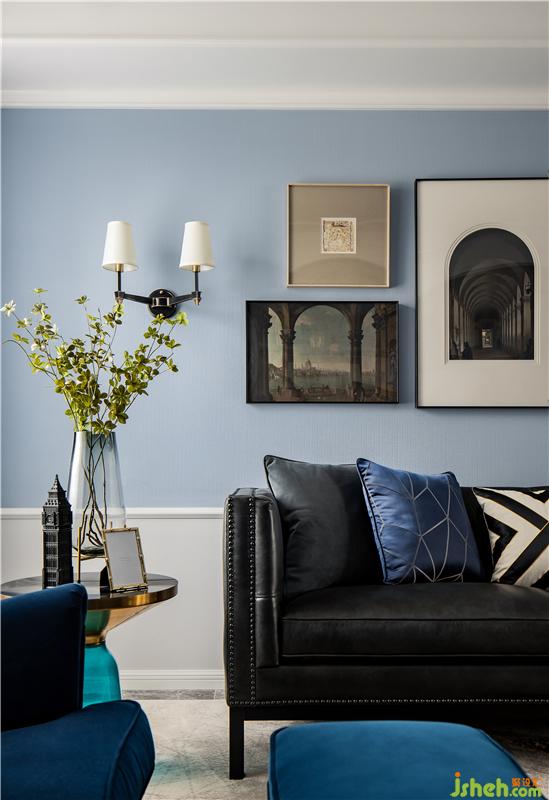 ▲配色上,公共空间大面积使用各种层次的蓝调(两年前的设计配色不慎撞到了今年的主题色),呼应了男主人技术流的职业属性。