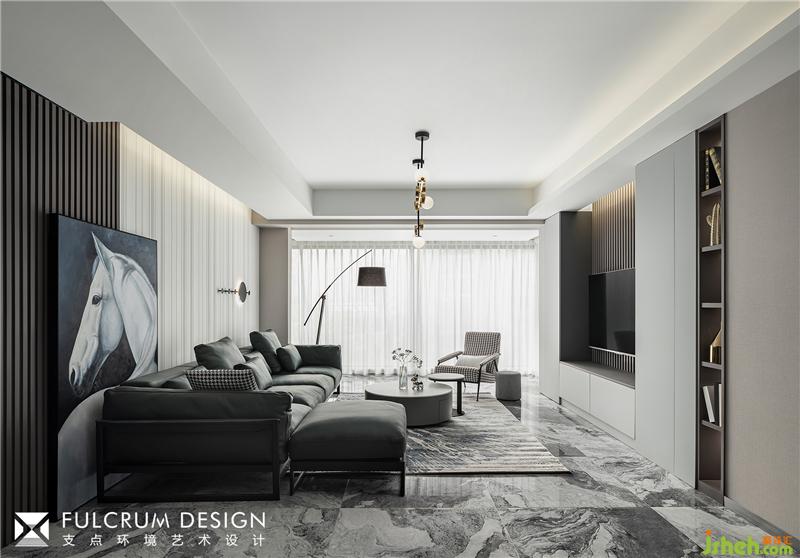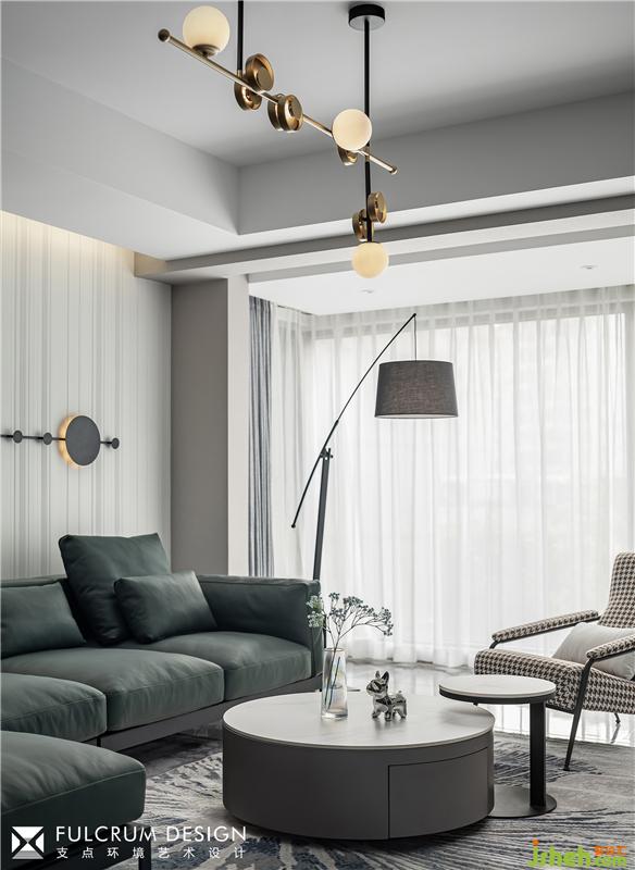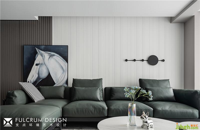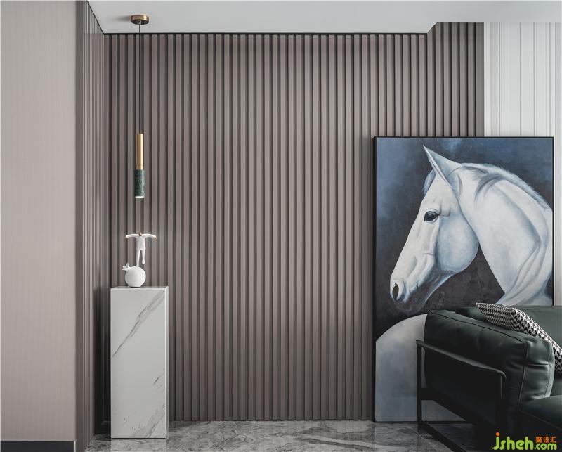 越过玄关的喧闹,墨绿和浅灰、真皮和千鸟格、石材或者海浪、所有的质感仿佛都凝聚在白马回眸的那一瞬。在这个空间,任何色彩都融合在场所整体感受中。