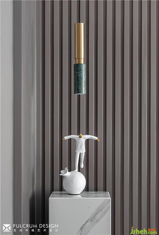 现场制作的灰咖条纹板沉稳不沉闷,没有凌乱的电线,没有繁杂的插座,完美隐藏,墙面变得素雅整洁。精细的家居设计有时候不需要大张旗鼓,春风化雨更能打动人心。