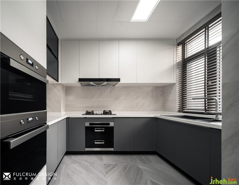 岛台的对面是厨房,到顶的柜子满足收纳。