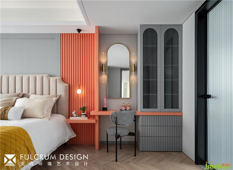 我们希望有属于我们俩的空间。家居设计拆除原有飘窗,扩大主卧的活动面积,给予夫妻日常健身更大的空间。