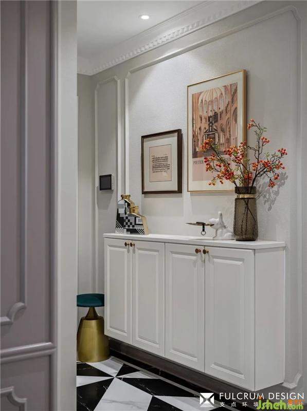 推门回家,墙上的挂画是家的写照,红色樱桃花束永远鲜活、灵动,迎接主人的归来。
