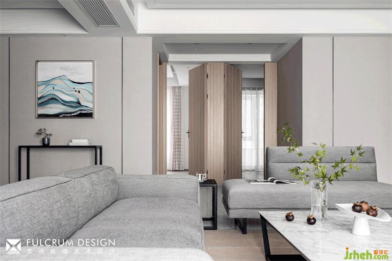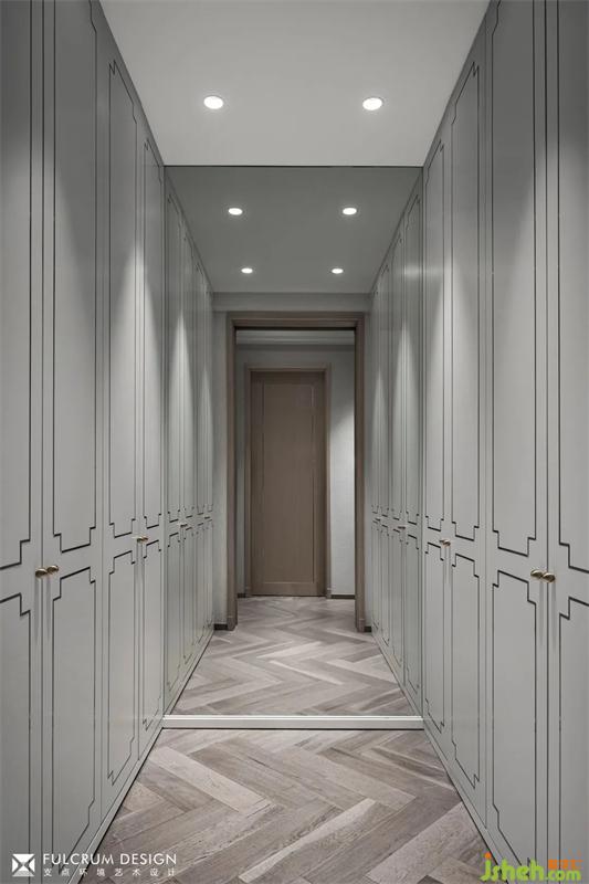 整体空间呈现灰白色调与公共区域统一,床品、桌子、储物空间的尺度,按照成人需求来配备,设计师特地选择了防眩光的灯具,安置在卧室,保护视力。