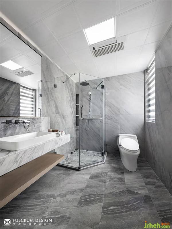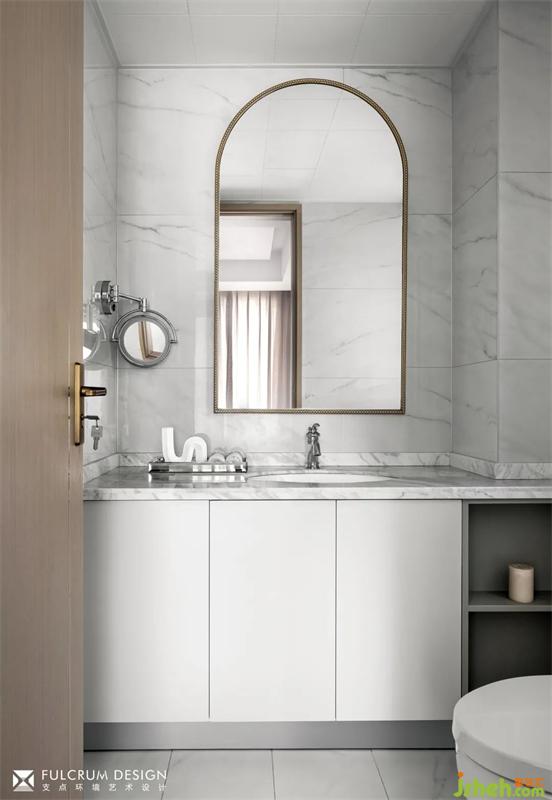 卫生间干湿分离,墙地瓷砖对缝铺贴,陶瓷台上盆更容易清洁、打理卫生,在洗漱时水花不易溅出来,也更显空间简约、高档。