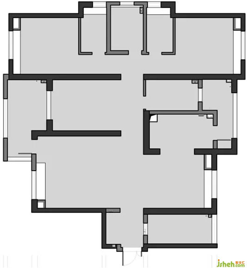 承重墙很多,户型改动性不大,玄关处的储物空间少,不足业主一家三口的玄关需求,飘窗多,考虑利用方式。