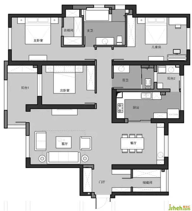 拆掉了所有的飘窗,提高空间利用率。