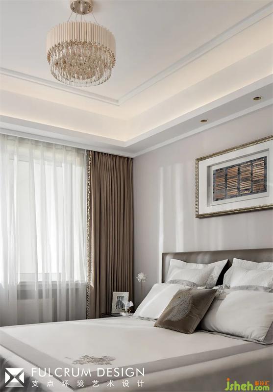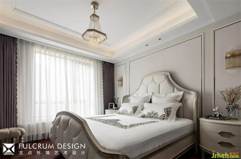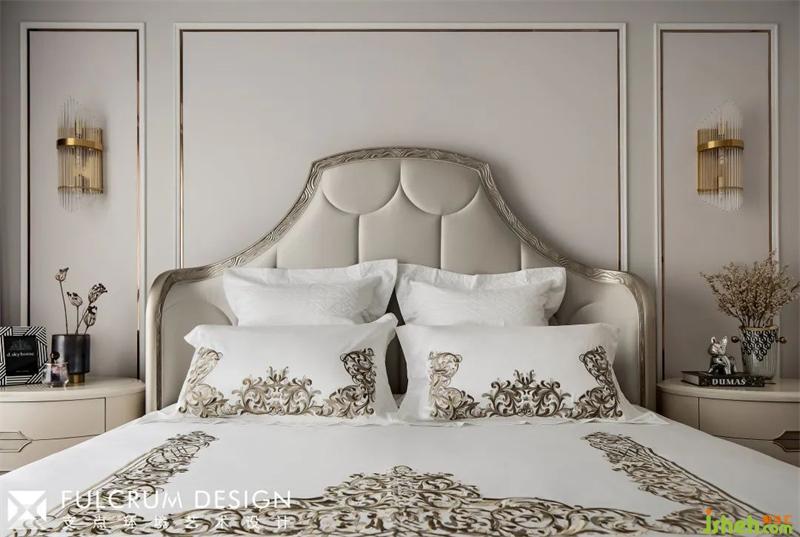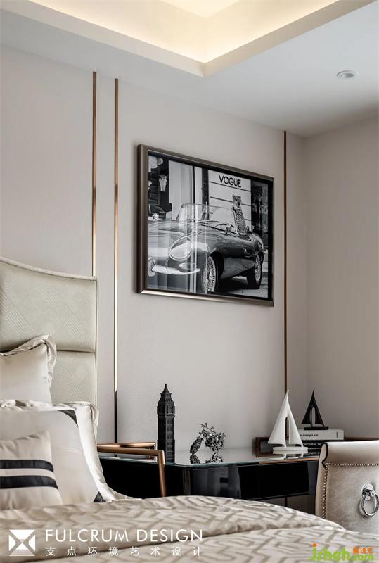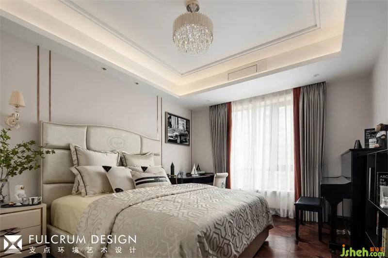 主卧延续客餐厅浪漫的英式风情,以深色复古木纹地板增添睡眠空间该有的沉稳感受,高床软枕,使睡觉更有仪式感。