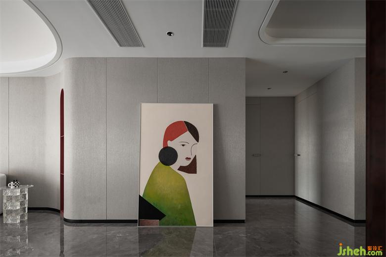 灰色原本是把一切色彩杂糅后的平淡,但画面右边的硬包泛着流光,呈现线性肌理,左边的艺术漆则如云朵,呈絮状蔓延,家装设计使这个家中既有坦然以对的平和,又蕴藏着一种直面人生的力量。