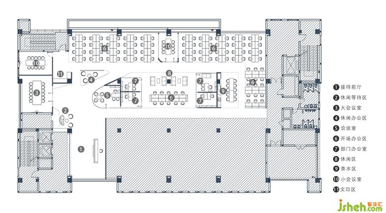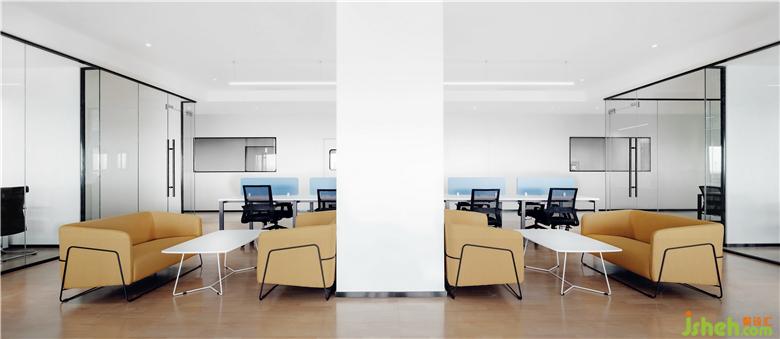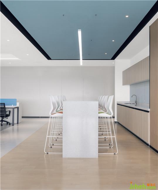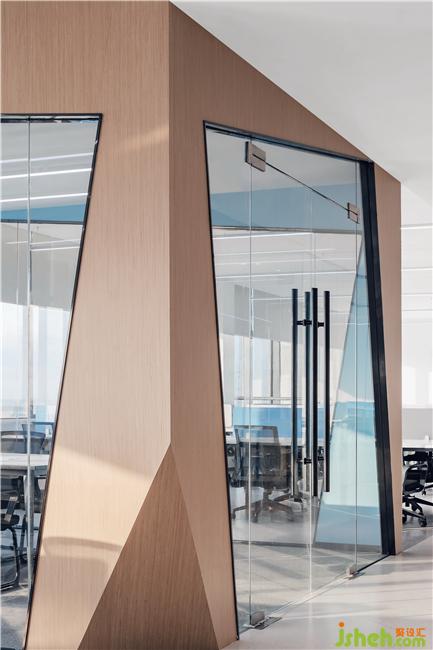 木饰面墙体产生的隔断感温和有力、收放自如,自然方正的形态遵循理性有序的设计法则,从而让整个空间有了延长性、艺术性,工整有序,流畅而舒适。办公室设计