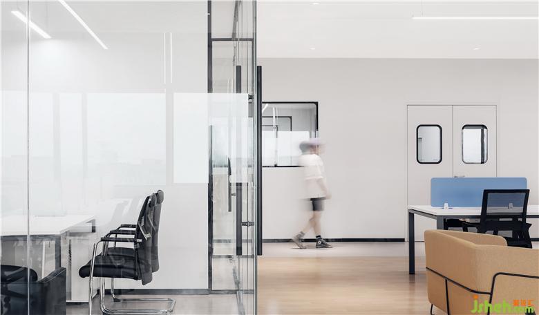 白色是整个重新建构的空间中保持稳定的部分,而由定制木质造型的体块、超白玻璃、家私形成的不同色调,不同质感的材质,就成了整个空间中最活泼的元素,与白色相得益彰。让整个空间呈现出静谧但不沉闷的氛围。办公室设计