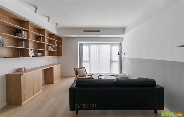 客厅将原有的阳台连通,打破传统格局,摒弃传统客厅配置电视与电视墙,使用投影仪和幕布,收纳起来,改造成一家人的休闲娱乐活动区利用客厅一整墙设计成书架去培养孩子从小的阅读习惯,增加亲子间的交流和家人间的陪伴
