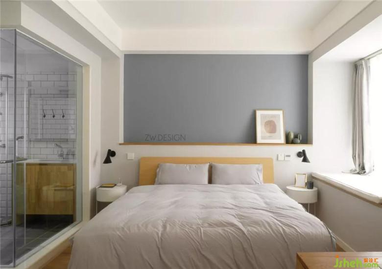 卧室承载着每个人的梦。优雅、饱满、莹润的蓝墙,搭配灰色床品,清新优雅。