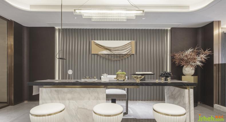 泉州别墅设计在负一层夹层这里加设一方品茗室,置上一张古朴而优雅的茶桌,焚香品茗,是极好的放松以及修身养心的场所。平时也可以把地下室作为接待客人、朋友的会客室,把一楼客厅的空间留给家人,彼此之间都有各自的休闲空间,别墅装饰互不干扰。
