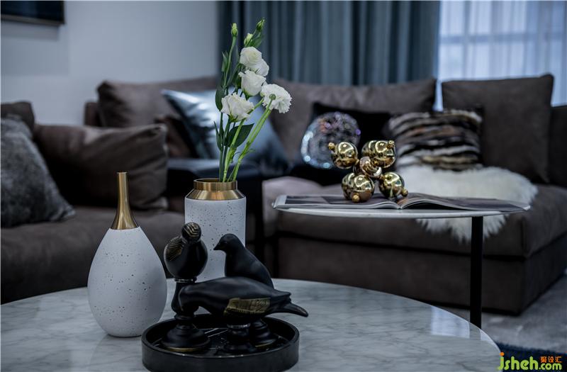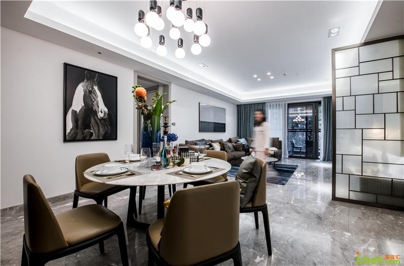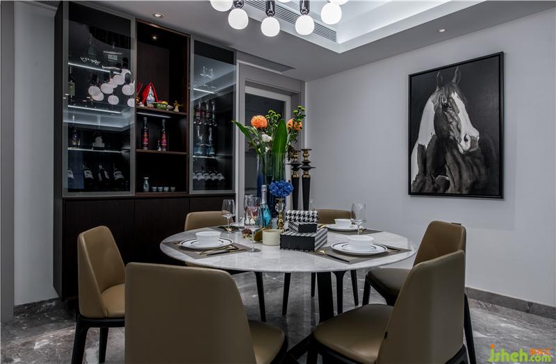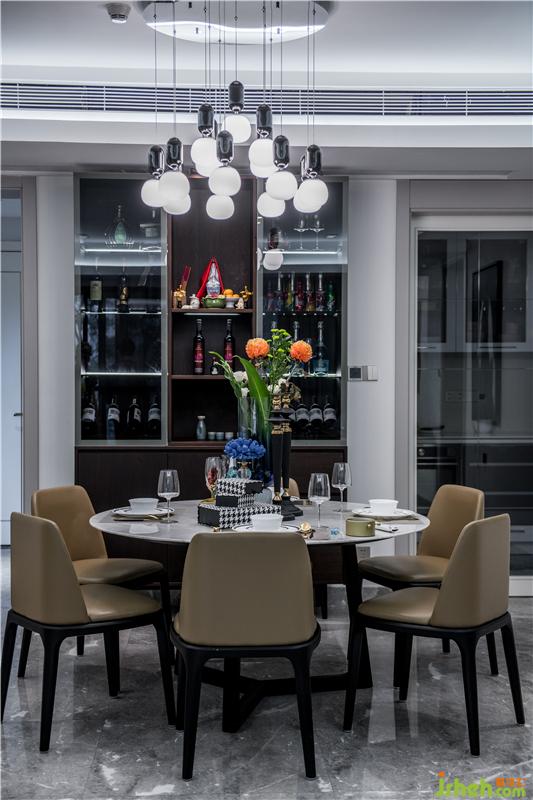 银白龙大理石在灯光的触摸下,展现出属于它优雅自然的肌理,使空间情绪在宁静、平和中得到平衡。室内设计师