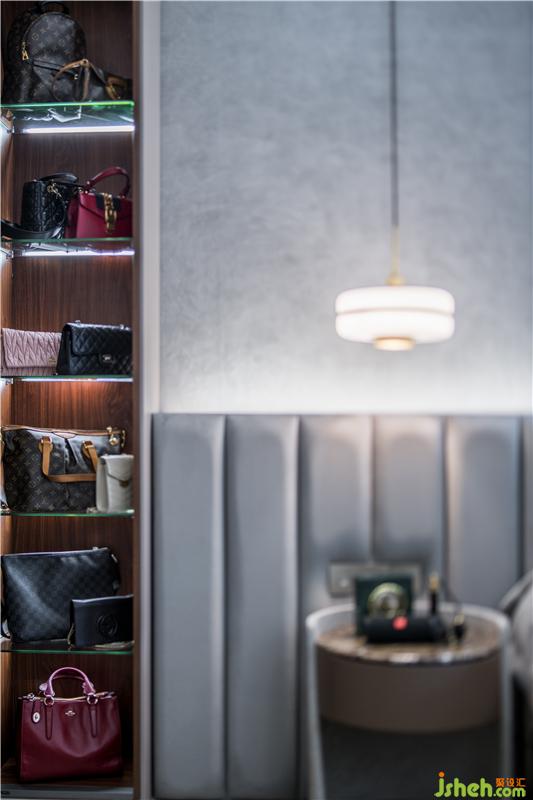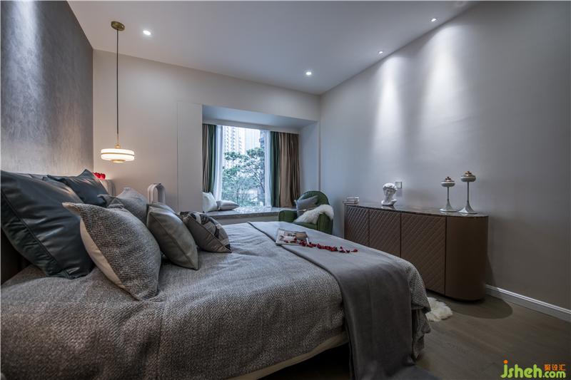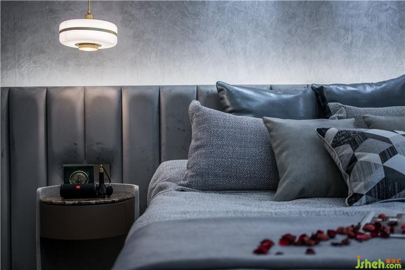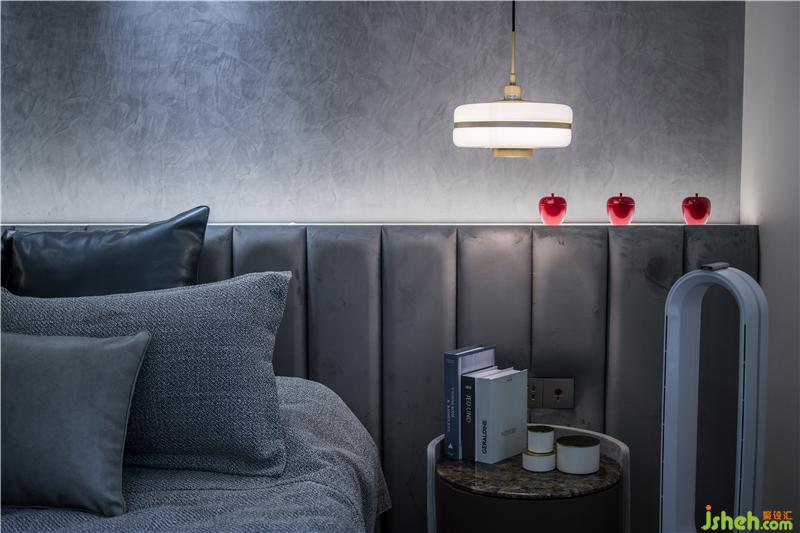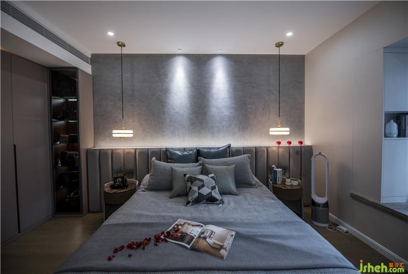 主卧闲雅高级,浑然天成,层叠的灰色的床品,搭配床头两侧的圆形壁灯,营造出“云开方见日,潮尽炉峰出”的大气与雅致。室内设计师