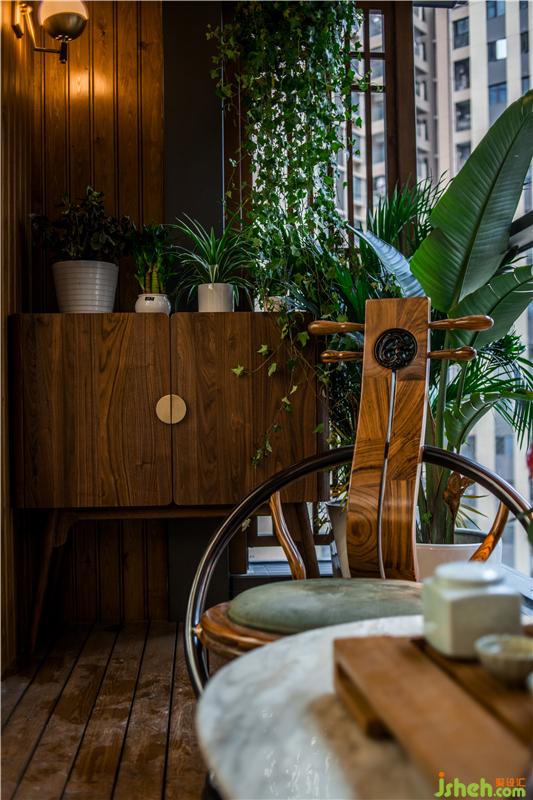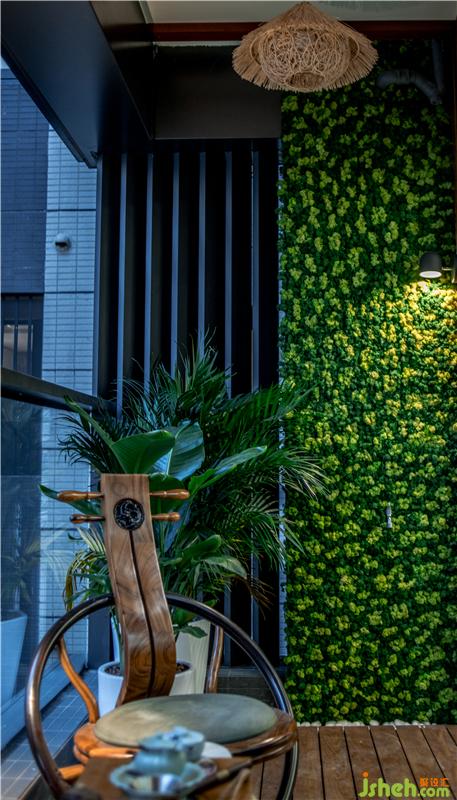 阳台以大面积的防腐木铺设,与各类花卉植物一起演绎一场生机盎然,和谐共荣的写意自然景象。独特的绿植墙采用真苔藓,在一片绿色环绕中,沏一杯茶,听雨歌楼上,去感受一茶一世界,一壶一人生的东方优雅生活。