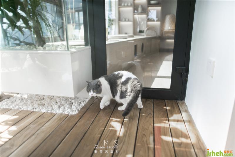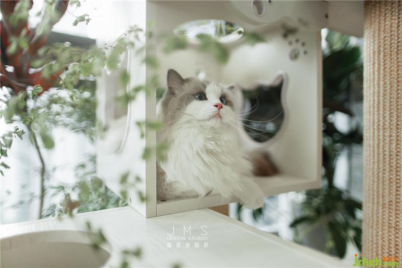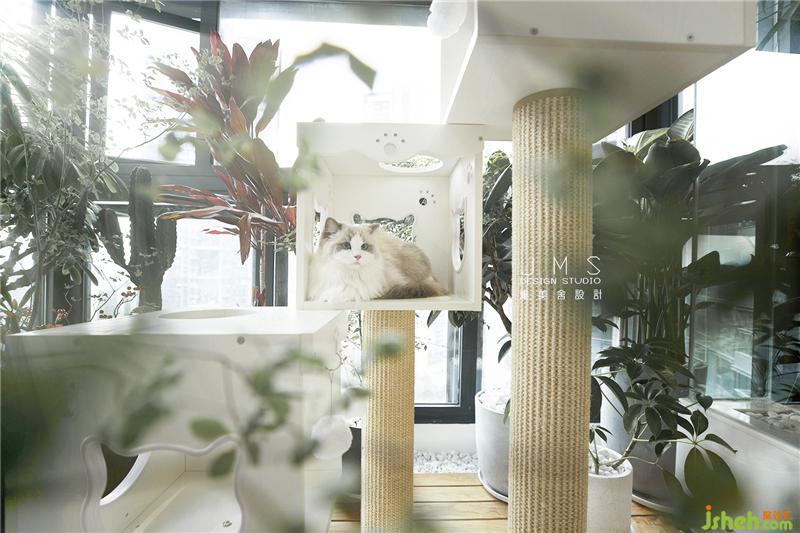 主人家的两只可爱猫咪,阳台成了他们的专属游乐场。环绕的绿植花树洒下阴凉,面朝室外也能拥抱斜斜射入的温暖阳光,精心设计的上下叠合空间,打造了一处供猫咪攀爬、娱乐和休息的“空中乐园”