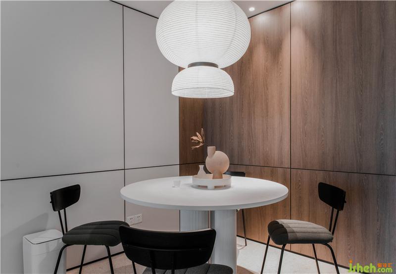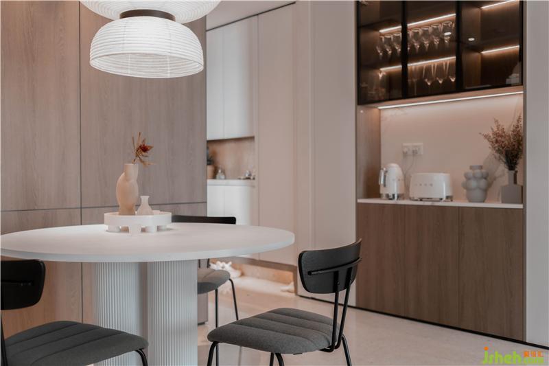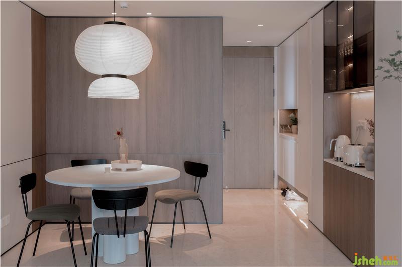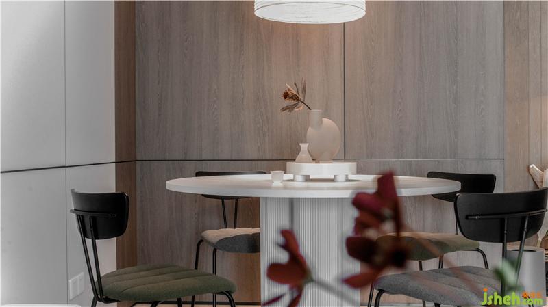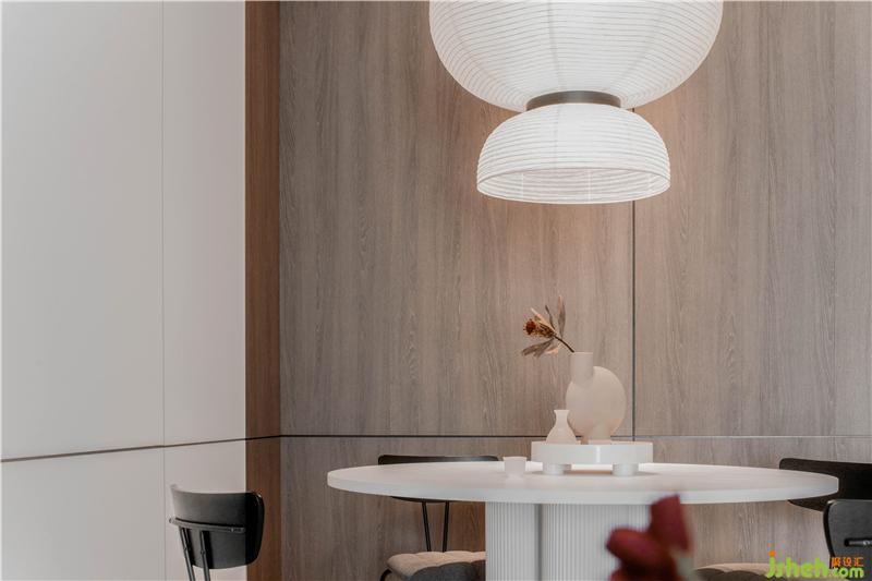 餐厅延续了客厅木饰面材料,让空间显得更大。设计中的适度留白,加强视觉上的舒适感。