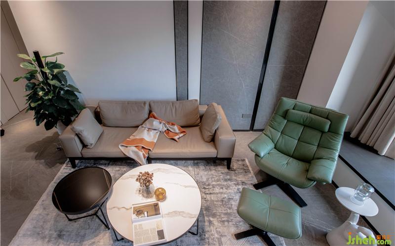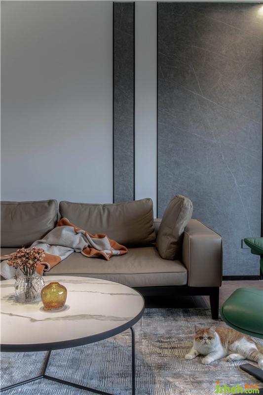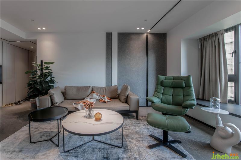 客厅沙发背景墙采用大理石搭配白色饰面板,和电视背景墙的大理石相呼应,简单干净的线条划分空间区域,不仅增加了客厅的美观性和实用性,还将大平层空间大、视野佳的优势发挥到极致。