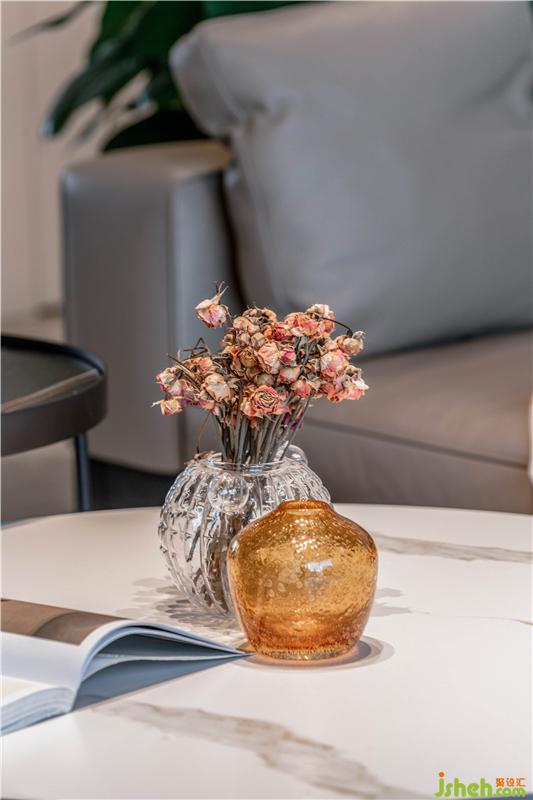 客厅饰品的无规则摆放,打破了原有的僵硬格局,让沙发不再是作为区域分界线而存在。