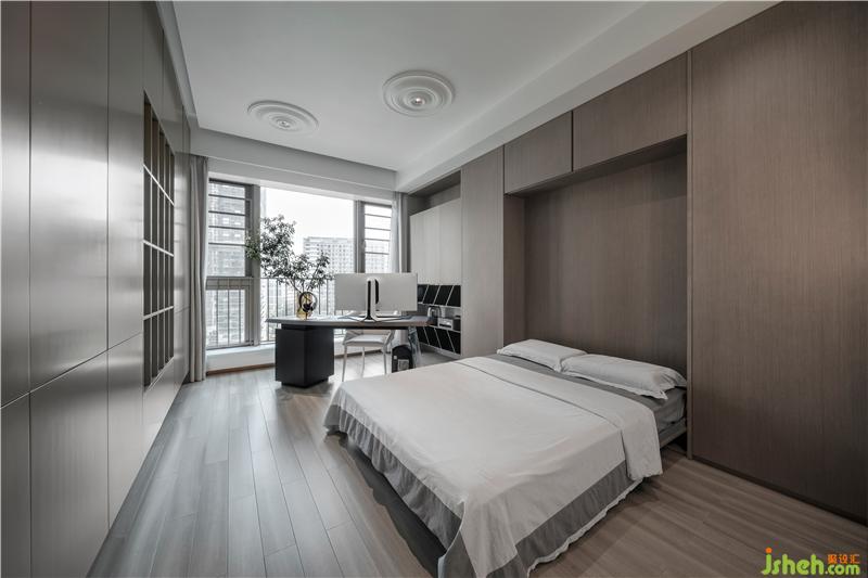 生活需要与人相处,也需要自己的独处空间。书房不仅仅是男主人的办公地点,更是他个人的休闲娱乐空间。内嵌式的单人床不仅节省了空间,更让他能够更好地享受个人时光,满足对独立空间的所有幻想。