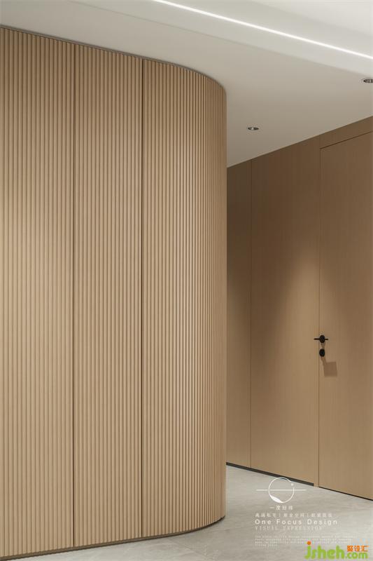 在空间布局上十分简明通透,没有多余花哨的装饰,柔和温馨的氛围给客厅增添了别样的魅力。整体统一运用木饰面,将空间的精致与格调一览无遗地诠释着舒适