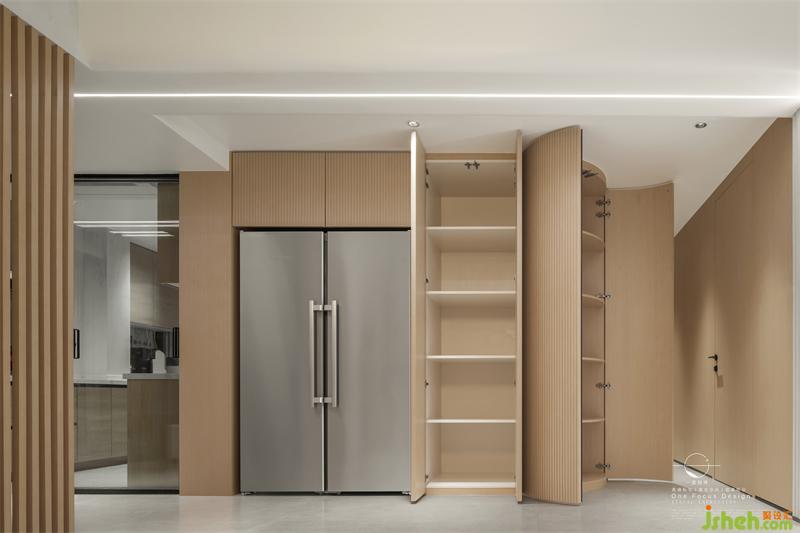 平常业主会习惯囤一些零食和日常用品,随着家中小孩的成长,储物空间的需求日益增多。设计师在此设置了大量的储物空间,便于业主囤放物品。