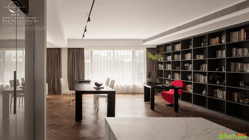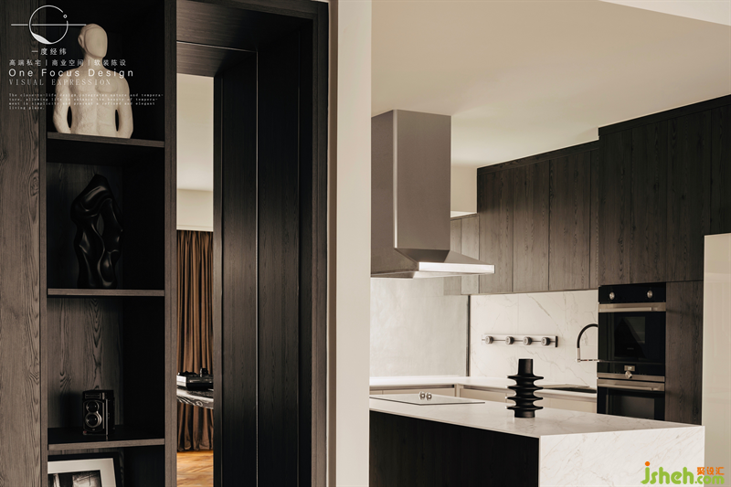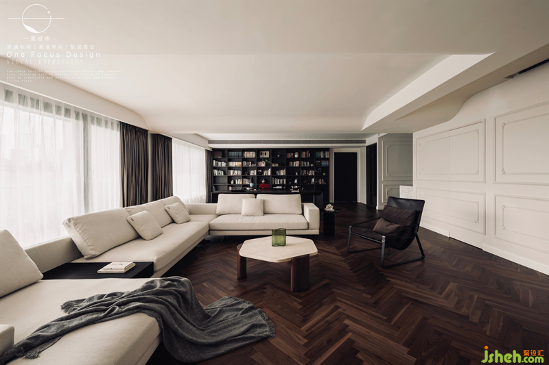 在本案中,设计师所运用的当代艺术,是基于对生活美学的深刻思考,以理性化的角度去复刻业主理想中的生活方式,予人舒适的感官享受与丰赡的法式美学体验。业主是一位对生活有品质追求的95后,不常做饭强烈要求把厨房部分留给小孩作为玩耍的区域,缩小原厨房面积;爱好读书,扩展了休闲的空间区域。