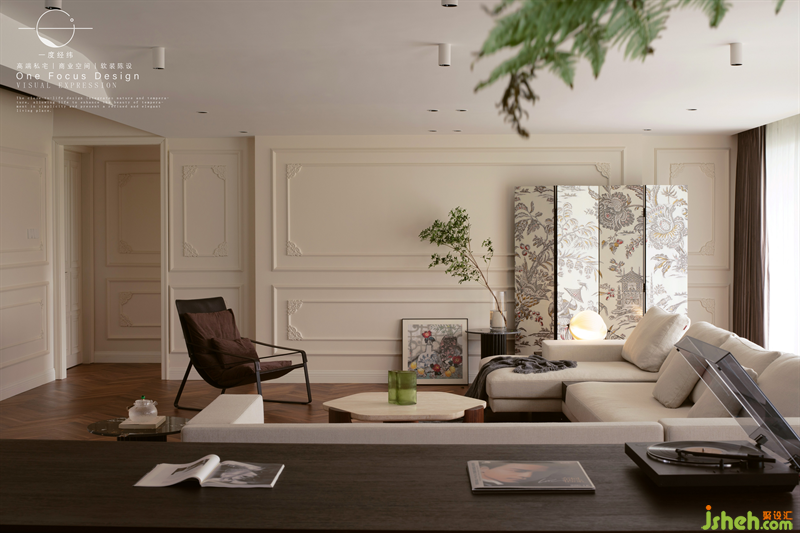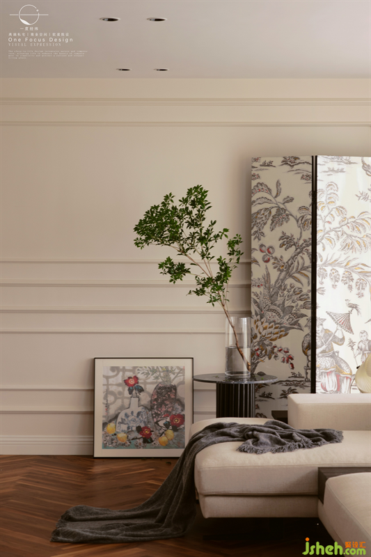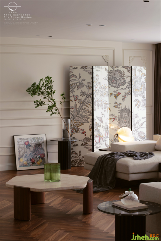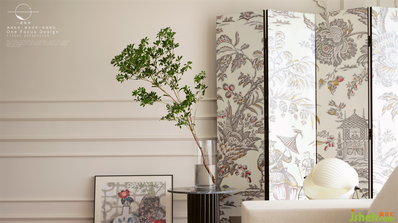 将娇嫩枝芽的剪影转化为微妙的感受体验,在空气中制造别致的画卷,唤醒周边的事物。家具与精致的屏风、绿植等配饰进行组合,使得整个空间富有装饰感又不会失去平衡。空间的大部分留白,引入充足的阳光,层层叠影凸显出画面的艺术感与活力。