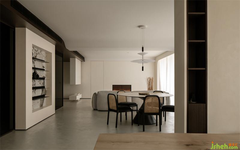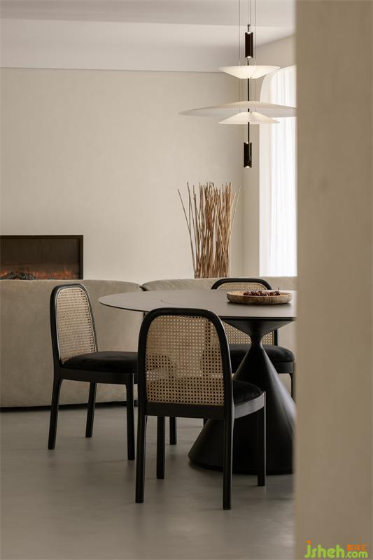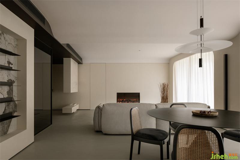 客厅、餐厅、茶室半开放并置,客厅的壁炉替代了电视,为家人与宾客友人提供一个相对纯粹的沟通交谈的空间。厨房、走廊、管家房、露台相互连通,便于管家日常工作,也可观赏到主人露台的园艺美景。长辈房特别设有的沙发电视,方便长辈休息和打发无聊。