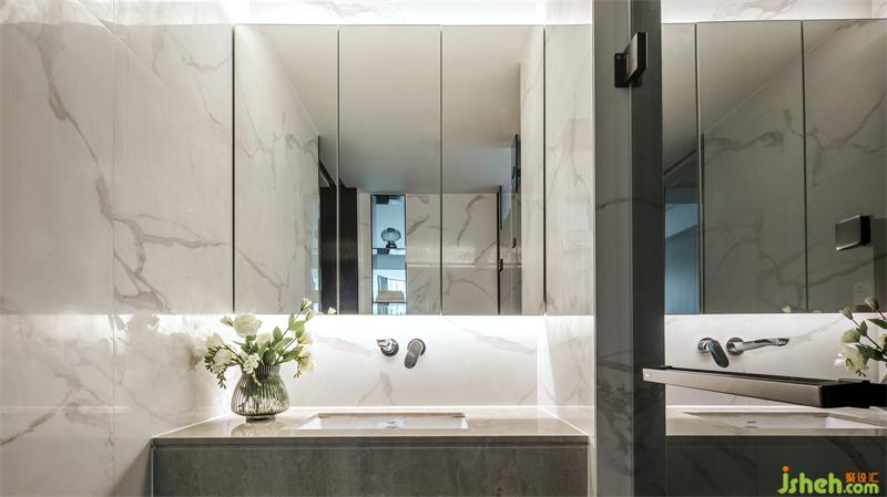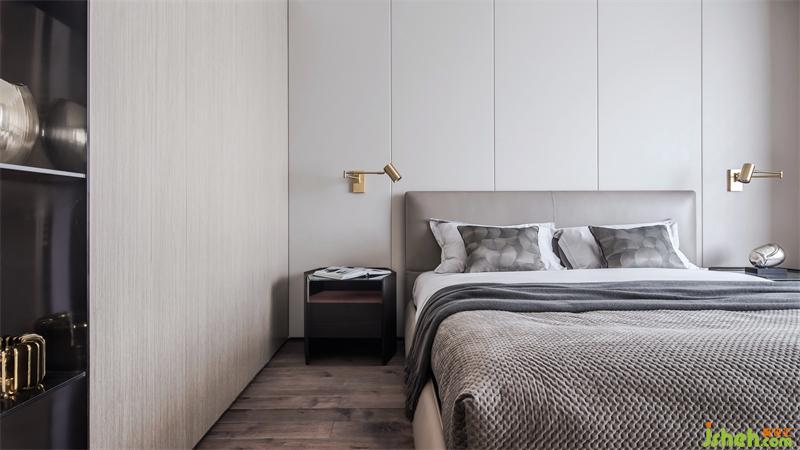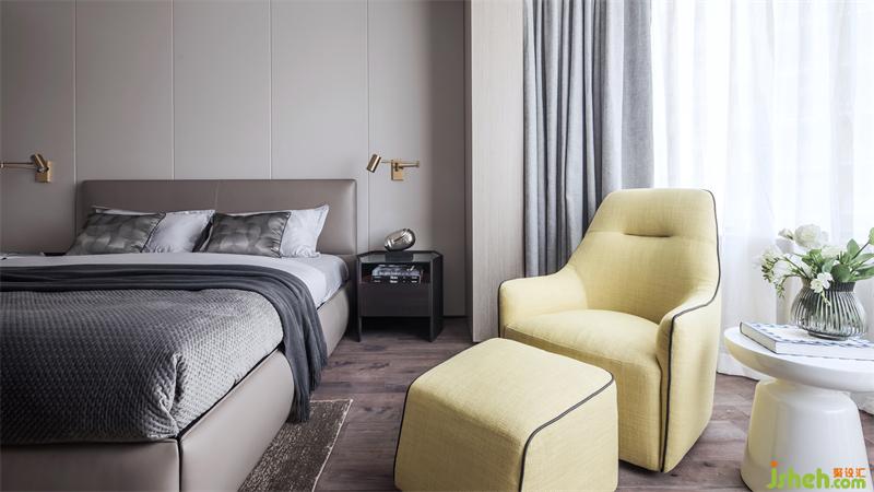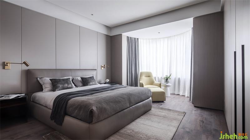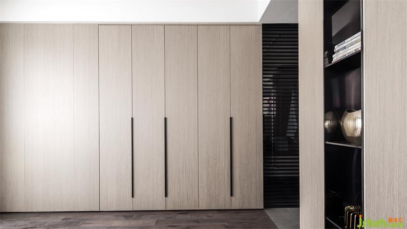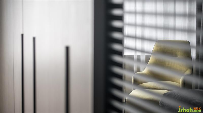主卧透过空间的虚实处理,模糊了功能区间的界限,形成一个自由的空间,共享与私密的角色互换,既有延展过渡,又有细节叠加,衬托出丰富多元的空间情感。