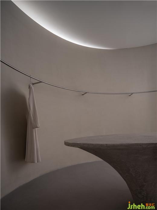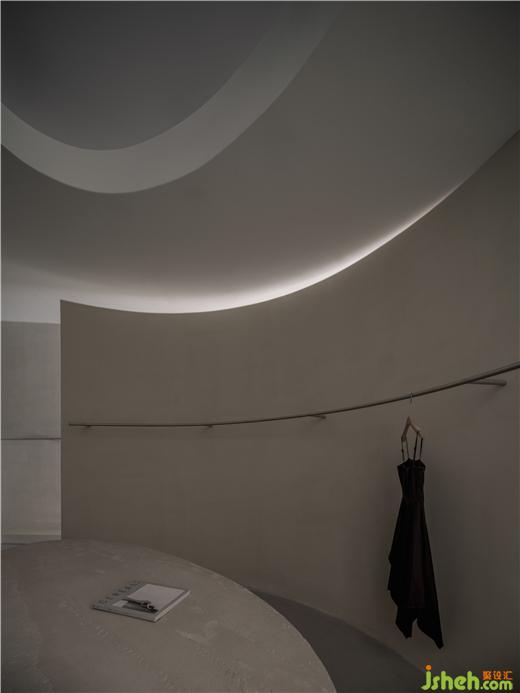 YIMENZI Brand Experience Store is a space that can be used as offline semi-open window-styled store and online live room. So, by making use of the arc wall and steps, the designers of LICO divide the space into five functional areas horizontally: entrance area for model and device display, product display area, live room area, fitting room area and washroom area. Vertically, a storage space is created and the steps is also a best decoration for customers to take photos in YIMENZI’s dress. It’s a multifunctional semi-open window-styled space that can be used as a space for daily operations and a night live room.