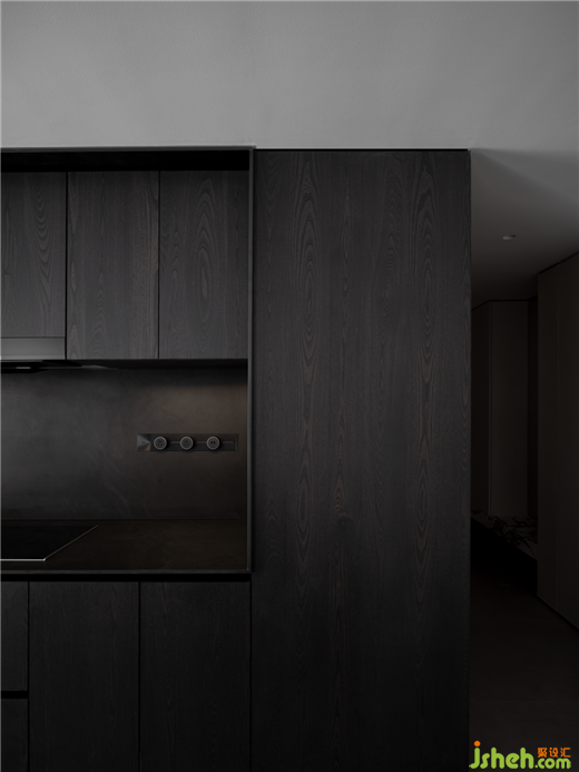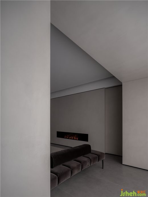 空间气质和氛围营造上,手法概括,要素简练,仅以墨色木纹,自然石纹,一方火焰,一株雅枝,一扇全景,唤起一种独立,内敛的优雅自性。
