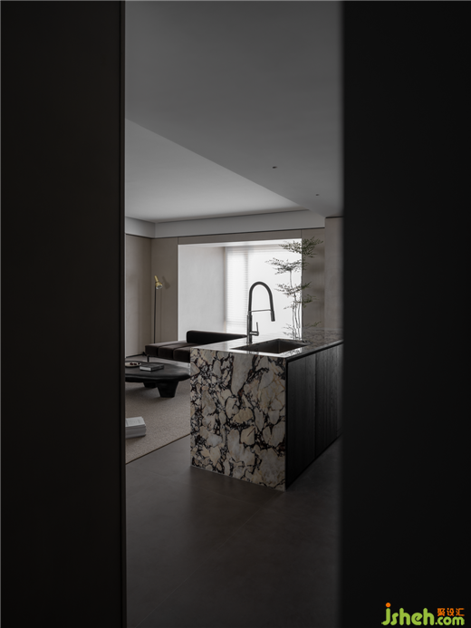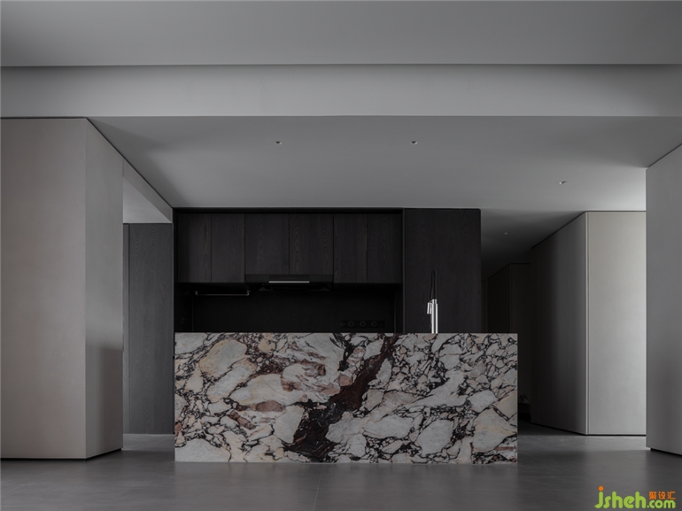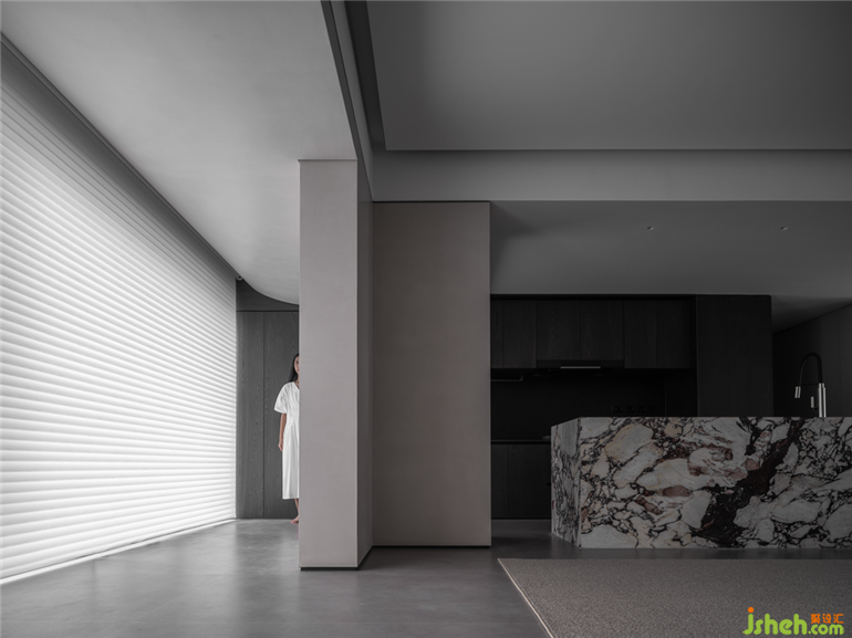 家是一面生活的镜子,或是慌忙杂乱,或是安定沉静,或是趋向物化,或是趋向精神。私宅设计空间会产生某种环境磁场而影响人的心绪,设计师几乎将所有日常生活功能性都收纳起来,大面积的留白,使它呈现出一种简单清晰的确定性,以及一种想要闲下来做些什么的交互性,从而让这个“家”产生一种放松得下来的安定感,以及某个时刻燃得起热情的仪式感。