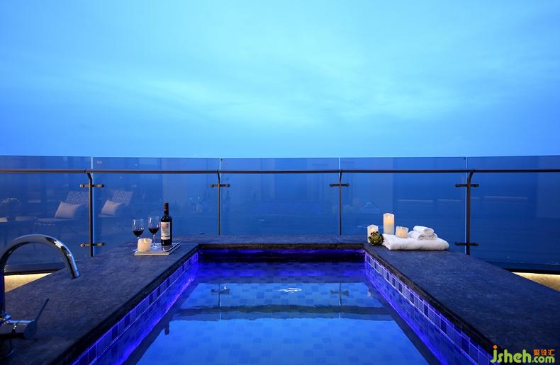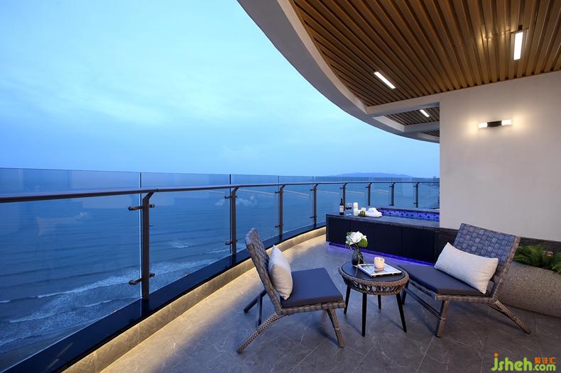 为了不浪费270°环抱大海的阳台设计,更不能浪费每一寸空间。根据屋主的喜好,我们在阳台设置了泡池,可友聚、可冥想。当置身于一泓清水中,目光所及,心境也随之游弋于碧海的宽广与蓝天的辽阔。