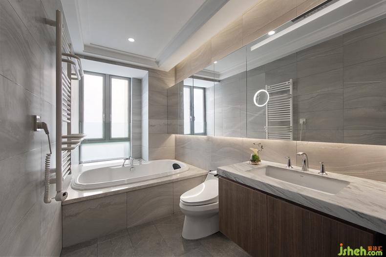 书房与卫浴空间则延续了暖灰色基调,木质让空间变得温和,功能性及美观兼顾,让休憩安然适意。
