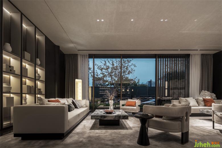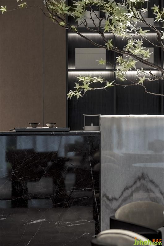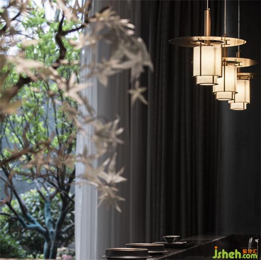 在诸暨,三江口一年一度的“水灯节” 声名远扬中元之夜,人们把灯具和纸船放入河内,顺流而下,河上顿时灯火通明,摇曳摆动,如同天上点点繁星。售楼处设计师将水灯的元素加以提炼演绎,分散应用到空间的各个角落。或静置于台面上,人的手微微触碰灯体,浮动于磐石之上的暖色光源便缓缓亮起。