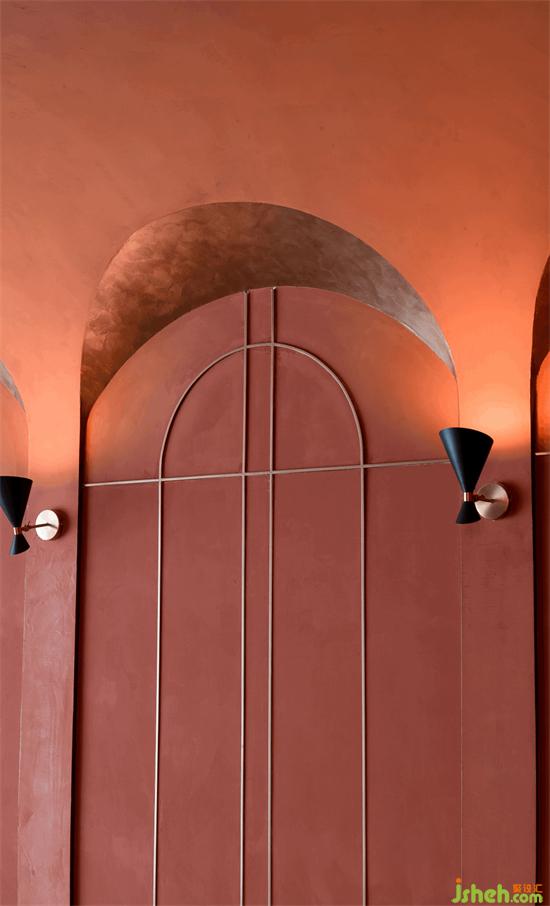 △ 设计师保留了原建筑复杂的井字梁柱结构,巧妙的以结构精巧的金属线灯施加柔和的漫反射,用光将弧度优美的序列感微型穹顶描绘出最美的轮廓和起伏。