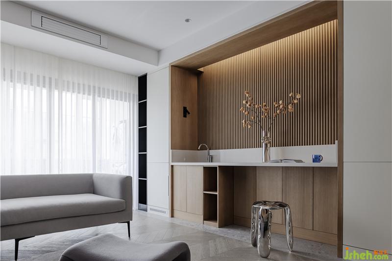 5、满足需求,客厅布置水吧台的同时,考虑扩展功能以及整体性与美感。室内设计师