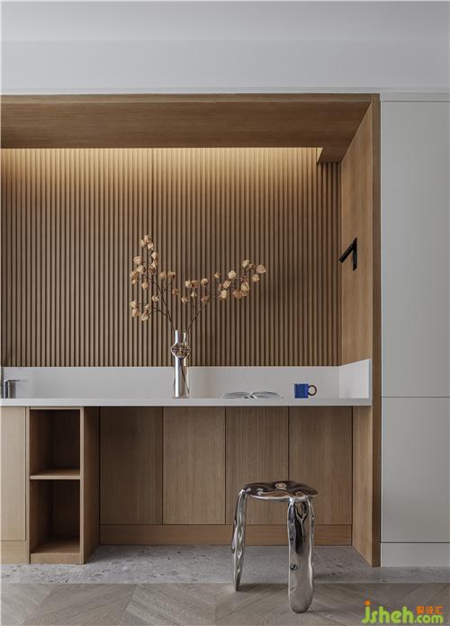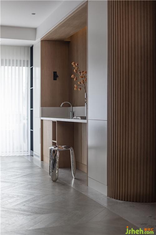 水吧台结合了大量储物功能,物品各有所处,让空间更加整洁美观。室内设计师