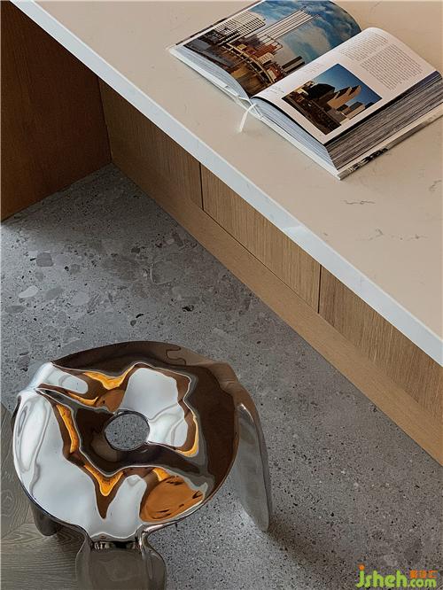 客厅水吧台同时也兼有阅读功能,和客厅沙发及单人位形成三点呼应交流。