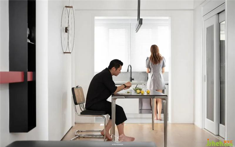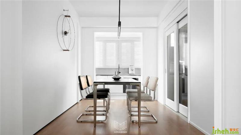 ● 拆除北阳台移门,将原北阳台纳入餐厅改成西厨和水吧台,南京室内设计师柜门、房门改色。
