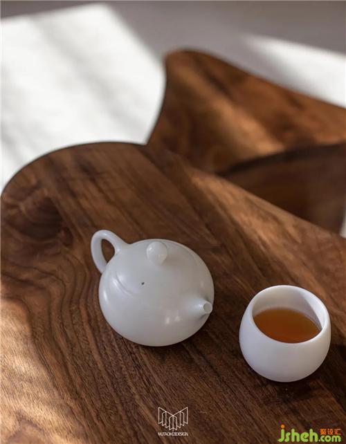 茶叶罐、干湿泡台和杯具构成的茶空间弥散明前雨花茶的清甜。