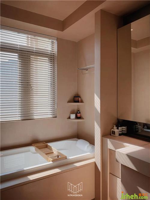 无需拆除原有墙地砖,南京装修设计用微水泥直接覆盖实现卫生间墙地顶一体化。