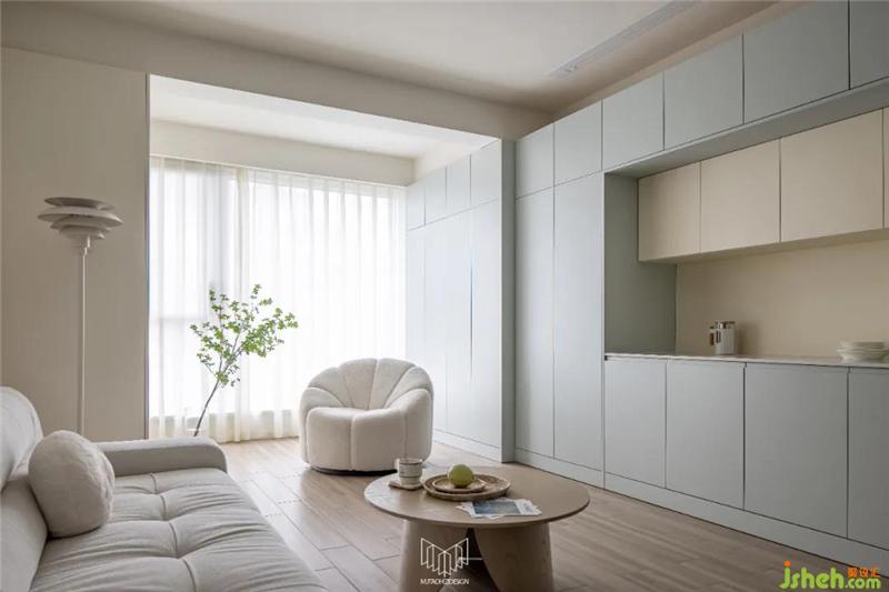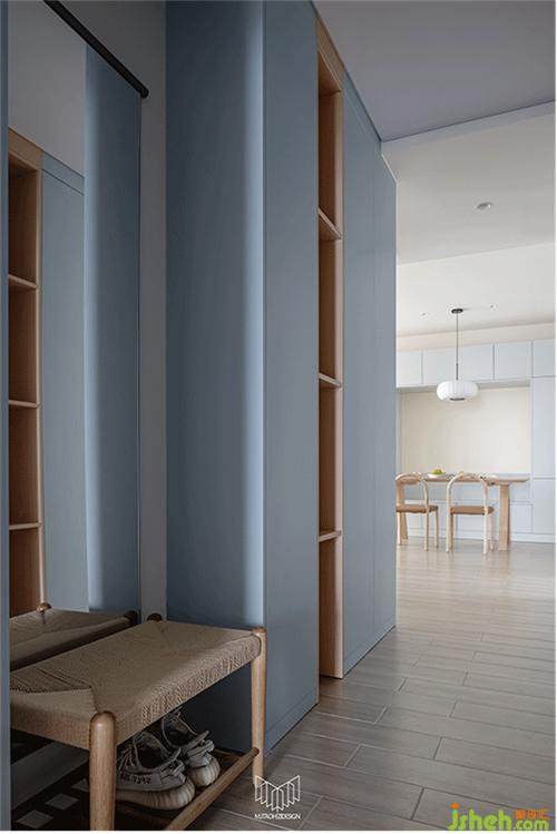 进门过道左右两侧布置大量鞋柜,完全可以满足日常换鞋的需求,而且也可储藏一些换季的鞋。进入门厅后,南京装修设计在卫生间门口布置实用性衣柜,可以便于日常回家更衣,不用再放椅子上,显得凌乱。