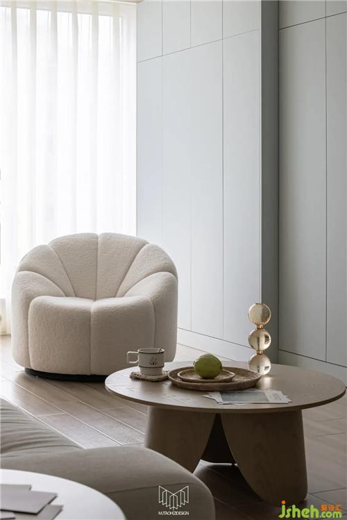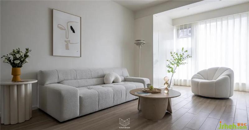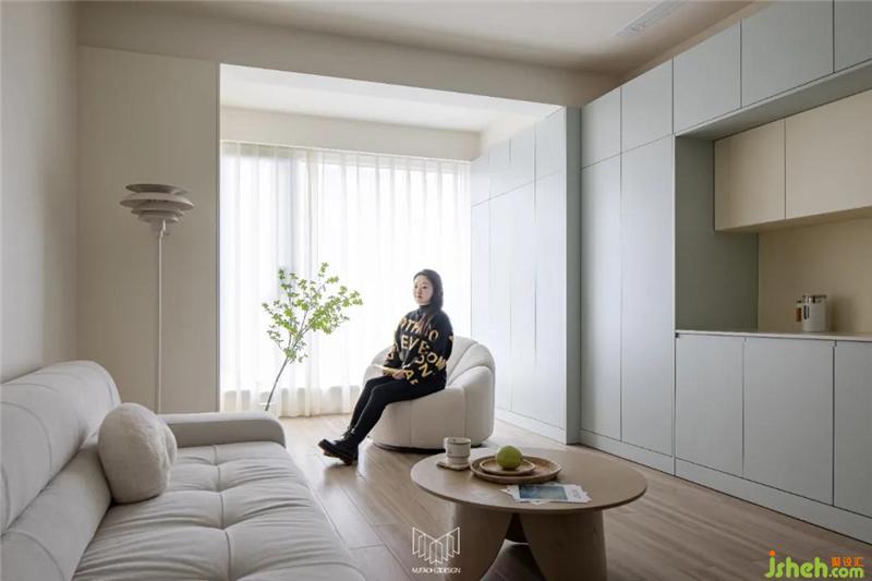 客厅区域尽可能将功能整体化,空间统一化。吊顶内预埋隐藏式投影幕布。